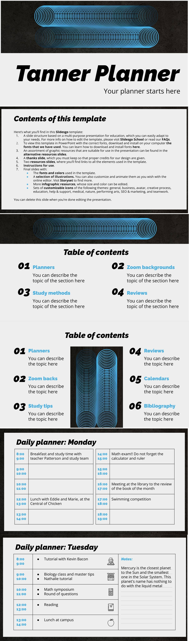 有这么多的课程、考试、测试和复习,你最好的盟友就是让事情井井有条。这个新模板来帮助您跟踪所有内容并让您的学生生活更轻松。有几个表格、日历和时间表,以及一些 Zoom 背景(以防万一您使用此软件进行虚拟课程),甚至还有几张幻灯片来创建头像