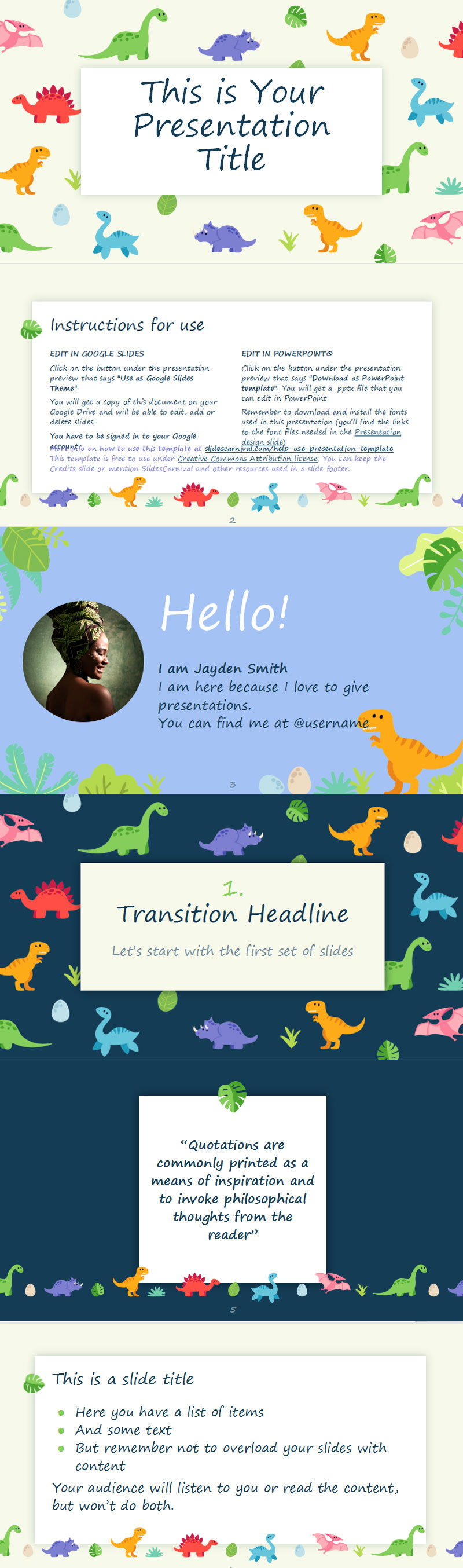 可爱的恐龙PPT模板