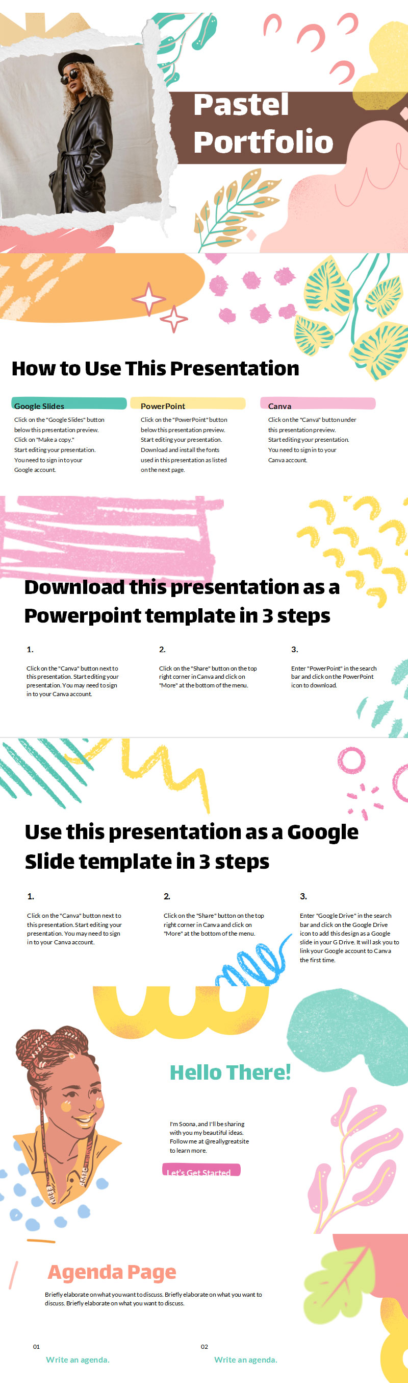 桃黄色粉彩可爱的投资组合演示PPT模板