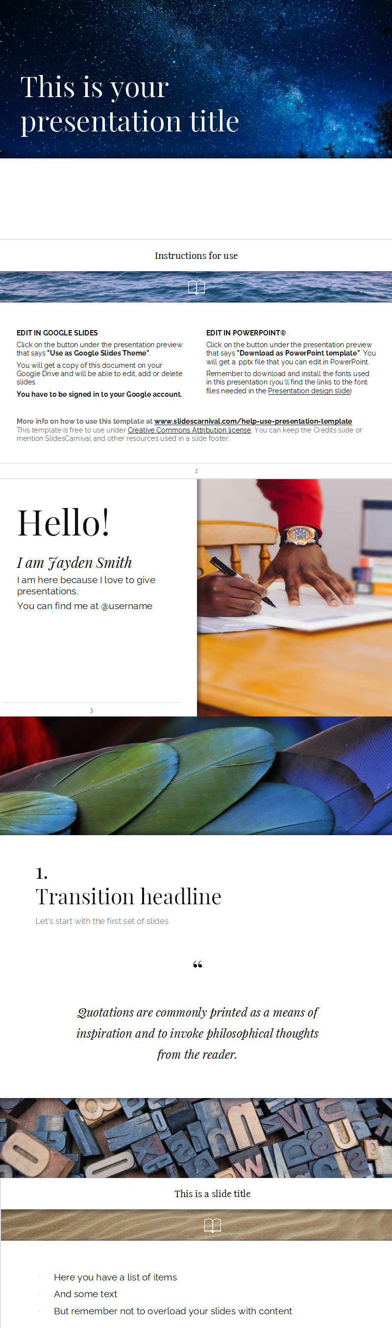 为您的下一个 ppt幻灯片演示文稿使用简约而优雅的设计,您的内容将大放异彩。这个免费模板让事情变得简单——就像呼吸新鲜空气一样。通过这种方式,您可以在几分钟内创建一个专业的演示文稿,让您感觉很有吸引力,并且符合您的品牌或企业形象。该设计具有干净、简约的风格、优雅的排版和多个幻灯片布局选项。由于它充分利用了鼓舞人心的照片,您可以选择合适的图像来帮助您传达信息并激发观众的灵感。请记住,所有元素都是可编辑的,因此您可以轻松自定义演示文稿