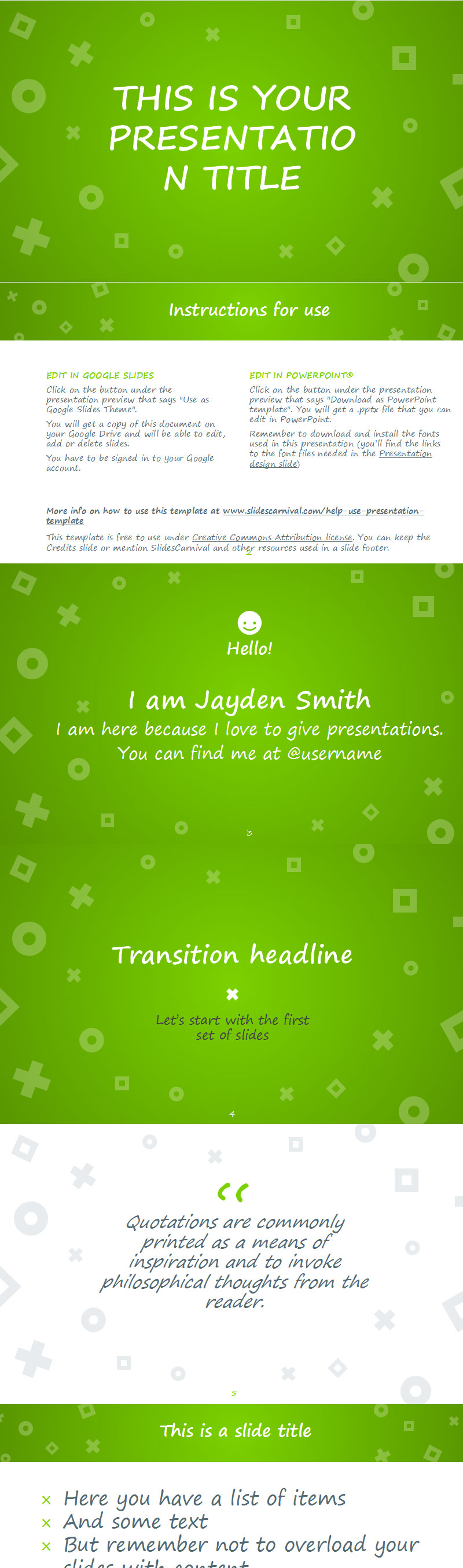这是一个有趣而现代的演示设计。非常易于使用,只需更改所有幻灯片中的背景颜色即可使这个免费的演示文稿模板适应您的品牌。凭借活泼的风格和装饰性的几何形状,它非常适合绿色、蓝色、橙色等明亮的颜色。如果您想谈论数学、科学或视频游戏,Iras 模板的设计很棒,尽管它几乎适用于任何主题。用它来活跃观众并传达积极和愉快的信息。
