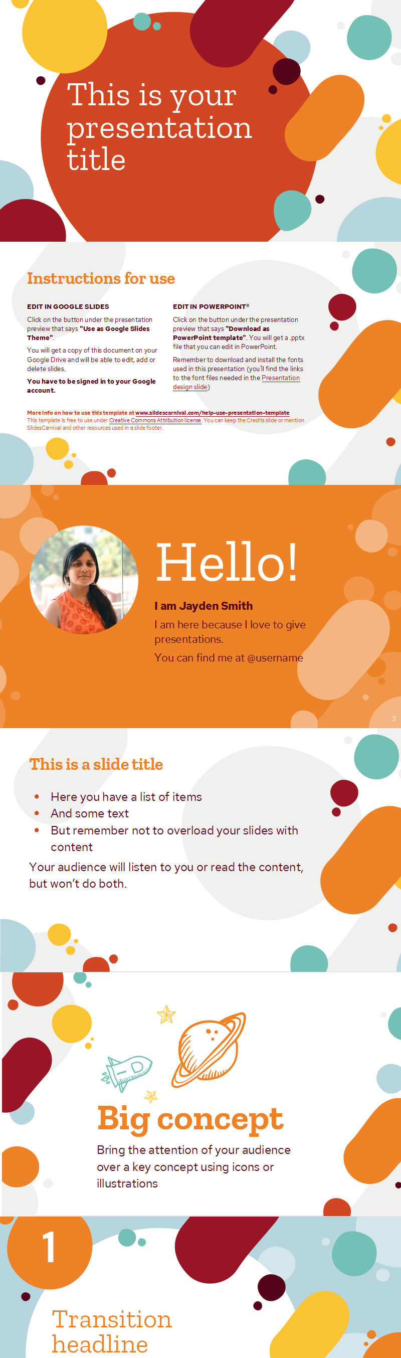 如果你想为你的演示文稿打造一个现代的、同时又令人愉快的外观,那么你一定要看看这个免费ppt模板。它的调色板基于充满活力的暖色调,传递快乐和能量,而斑点形状则为幻灯片带来有机的手工触感。如果您不喜欢所使用的颜色主题,请随时将其更改为适合您需要的颜色。该模板旨在尽可能易于使用,同时实现最大的可读性和观众兴趣。使用这个免费主题,让您的听众立即心情愉快。