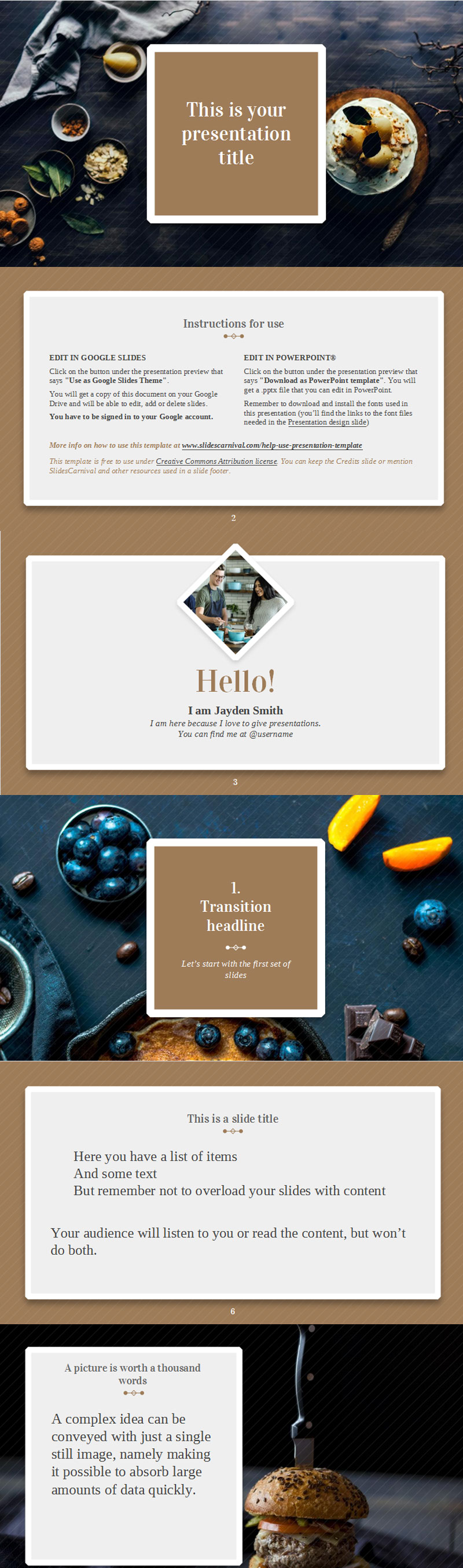 如果您正在寻找优雅的 PPT模板,具有优雅的设计和沉稳的调色板,那么这个是完美的选择。无需花费数小时在演示文稿设计、编辑和自定义所有元素或更改颜色以使其适应您的企业形象,即可以时尚的方式展示您的想法。利用多种布局选项,以平衡优雅的方式呈现您的幻灯片。用它来谈论食物、烹饪、时尚、酒店、旅游、化妆品等。优雅精致的排版也使这种设计适合发送您的婚礼请柬或照片。如果您需要在明天之前完成专业演示,这是一个非常漂亮的设计