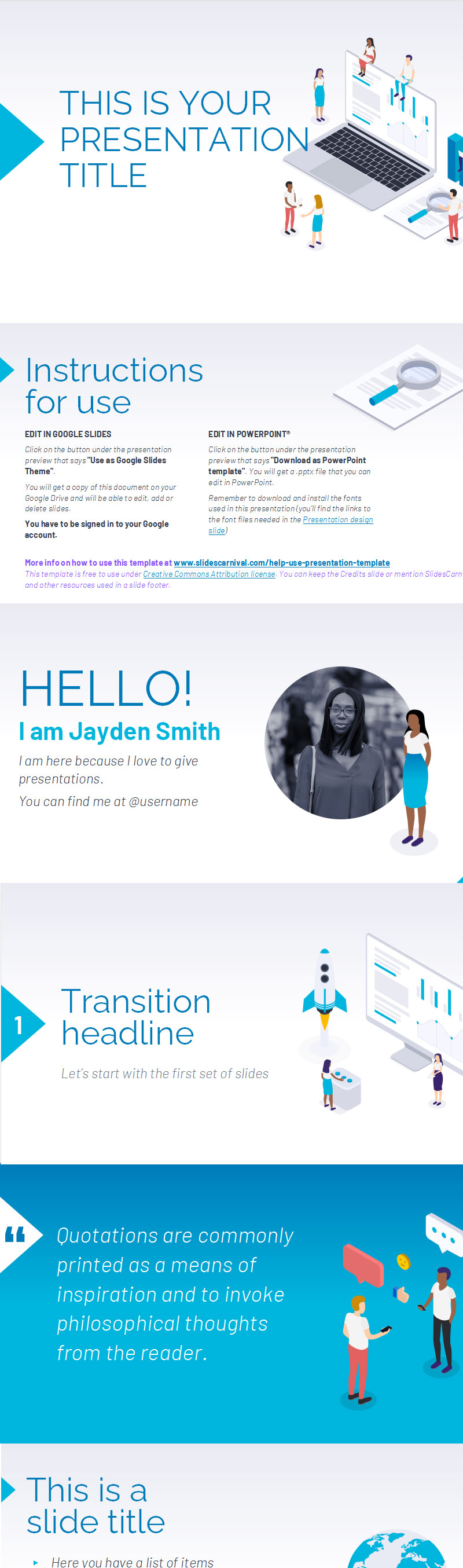 下载这个免费的ppt模板,像专业人士一样展示您的内容。此设计包含有关商业、市场营销和技术主题的等距插图,可使每张幻灯片都脱颖而出。更改全局主题颜色中的蓝色调,您将看到插图如何适应。只需单击几下,即可使演示文稿适合您的品牌,这非常有用。此外,您还会找到图标和其他图形资源来补充您的内容并使其更具吸引力。在工作环境中使用它来展示您的营销计划、媒体策略或推销您的下一个想法