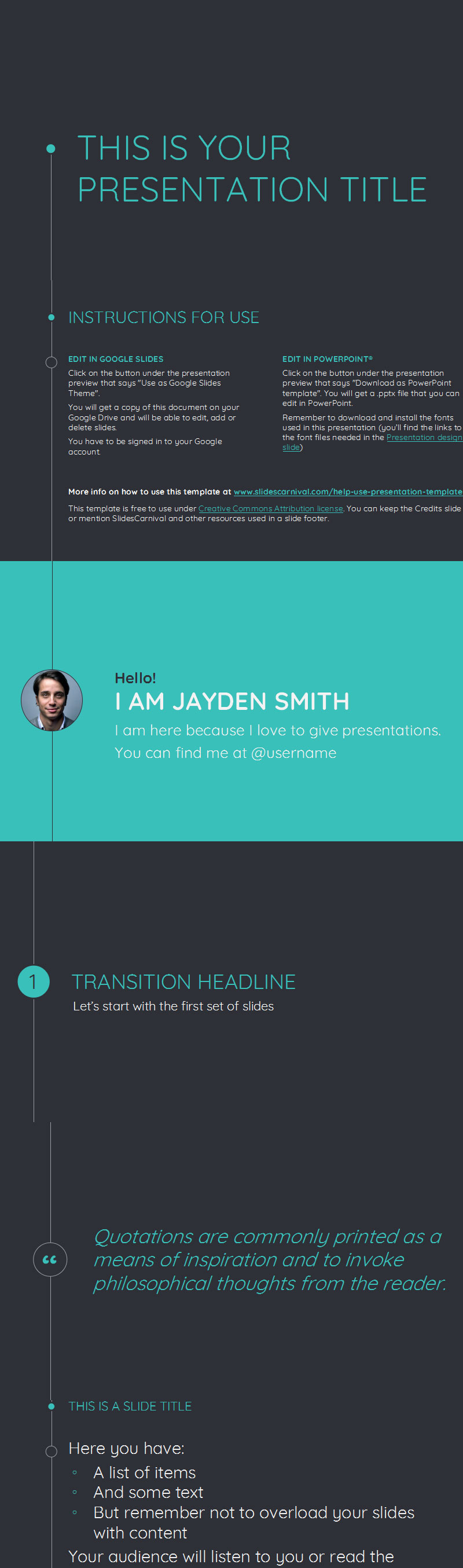 严肃的内容需要专业的设计,而这正是您使用此免费演示文稿模板所能获得的。深色背景和单一强调色使其易于适应您的品牌,因此您可以在商务或公司会议中使用它。