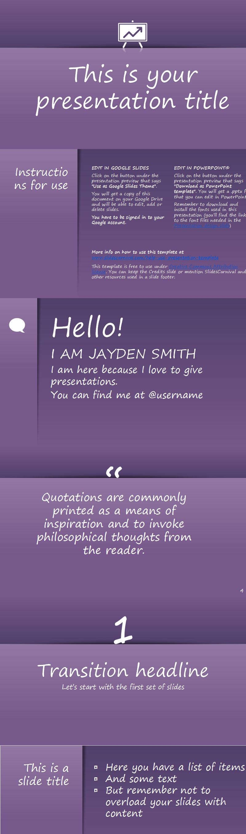 使用这个免费的简单模板快速创建 ppt幻灯片演示文稿。背景可以设置为任何颜色,设计将以任何一种方式工作。因此,您只需单击一下即可使用与您的主题或企业标识相匹配的颜色来自定义主题,然后使用包含的图标为其添加额外的触感。通过简单而清醒的设计,这个主题将适合任何主题,您可以为商业和教育选择它。与 SlidesCarnival 模板一样,所有形状和设计元素都是完全可编辑的。无论您是学生、在初创公司还是大公司工作,都可以使用此主题专注于内容,而不必担心设计。