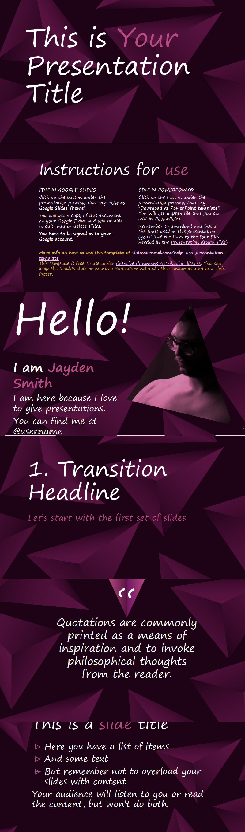 使用这个现代的免费 ppt 模板,在您的下一次演讲中保持原创并给您的听众留下深刻印象。这种设计有一个深色背景,使白色文本尽可能突出。几何字体和抽象 3D 形状的组合传达了技术或视频游戏的外观。更改主题调色板以轻松将设计转换为其他色调:蓝色、红色、深灰色等。此主题还包含图标和图表,您可以使用它们使您的内容更加直观。在您的下一次会议或会议中用这个前沿的演示文稿让您的听众惊叹不已。