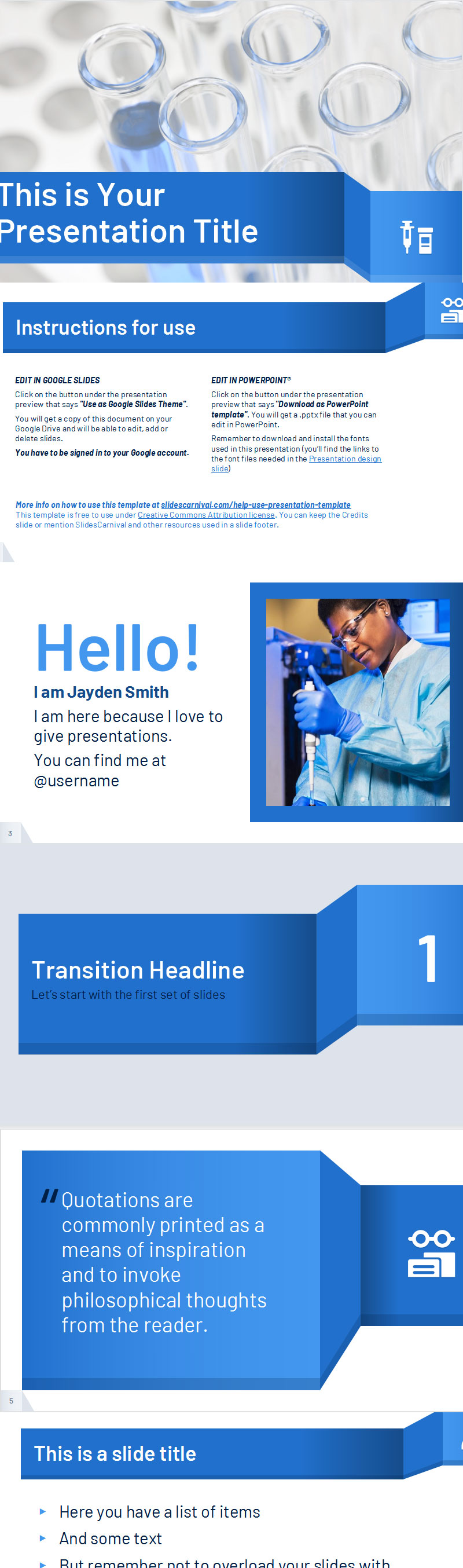 此医疗免费模板适用于 ppt 幻灯片。简洁的设计准确地描绘了您想要分享的信息,而蓝色调色板也传达了与健康专业相关的信任和专业精神。请记住,您可以更改主题颜色并将蓝色调整为您需要的特定色调。充分利用预先安排的幻灯片来展示您的内容,并使用包含的医学图标以直观的方式解释复杂的信息。用它来介绍临床病例、谈论疾病或向医学界解释您的研究和发现