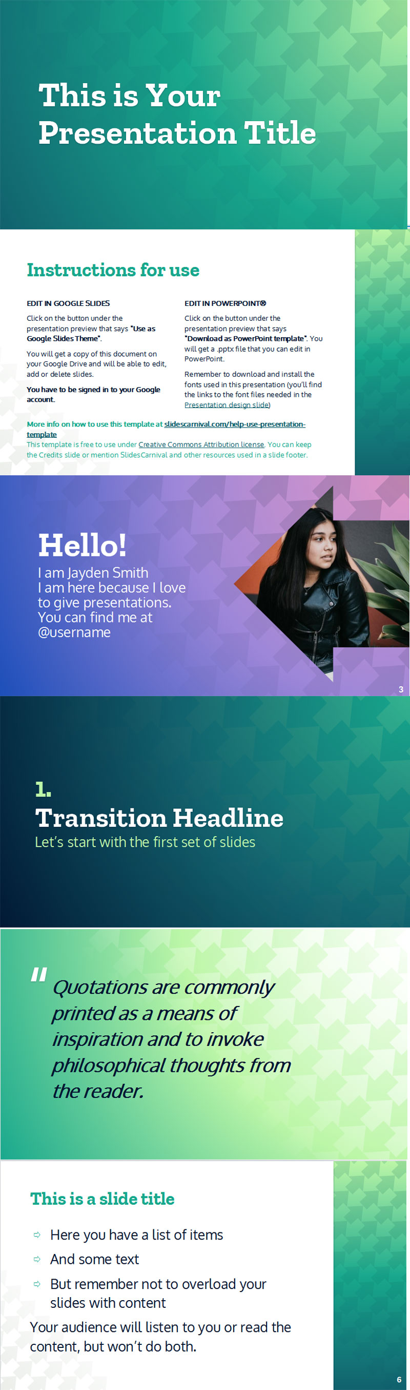 就业务而言,您的信息必须传达并说服您的听众。种绿色调的专业设计具有向上箭头的几何图案,传达了活力和成长。除了许多不同的布局之外,您还会发现许多额外的图形资源,使您的内容更加直观。立即尝试,您会惊奇地发现准备套牌的速度如此之快且如此轻松。