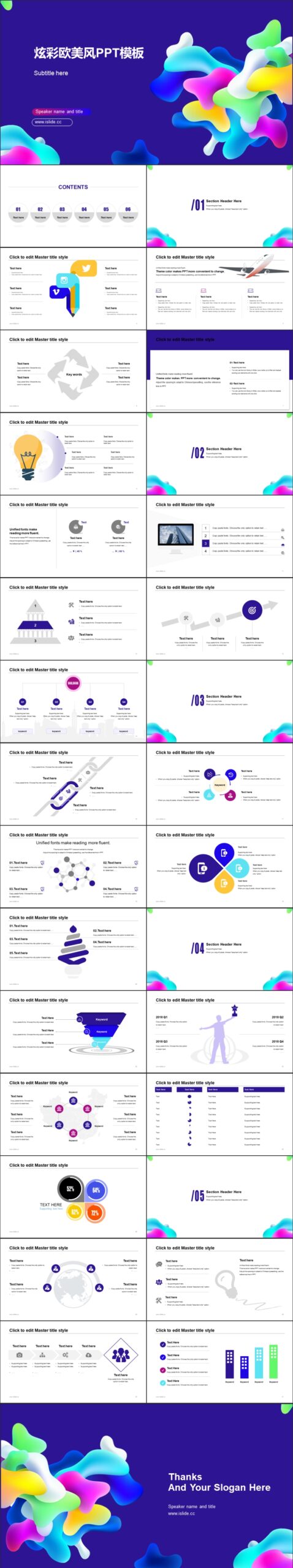 模板概述 该PPT共计32页,主题为时尚商务风。 详细介绍 该PPT模板分6个部分,每个部分都包含丰富的逻辑图示素材、图表素材、版式和架构表,非常丰富且实用,可以根据需要进行筛选使用。 适用范围 营销推广、工作总结、产品介绍、主题会议、分析报告等