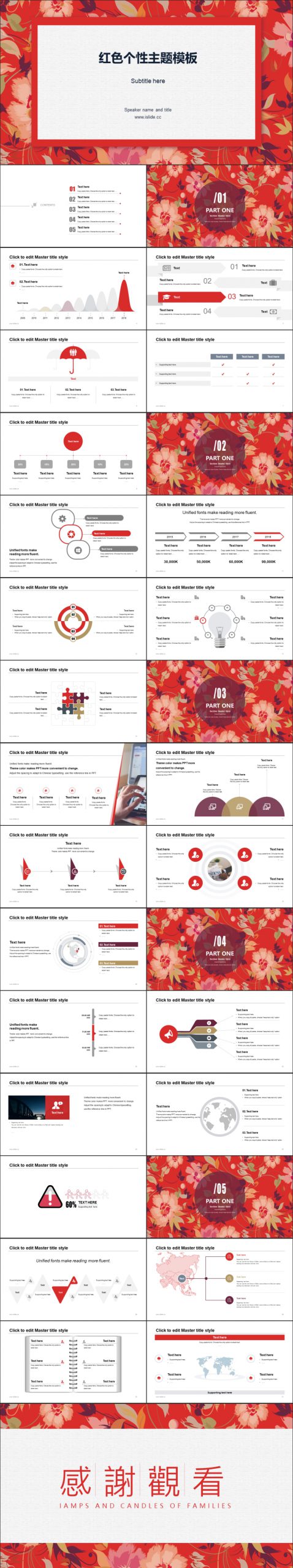 国风红色花纹PPT模板下载