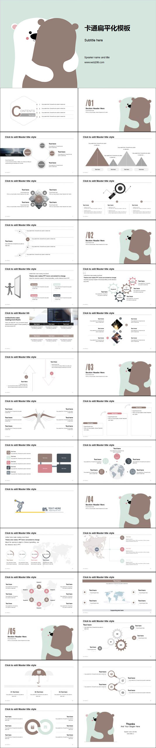 拥抱的小熊卡通扁平化模板PPT模板下载