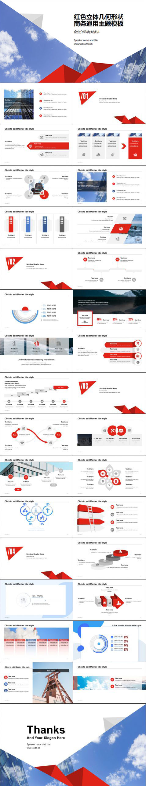 红色立体几何形状商务通用PPT模板下载