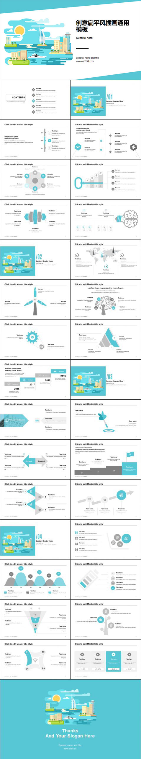 水上城市夏日度假风PPT模板下载