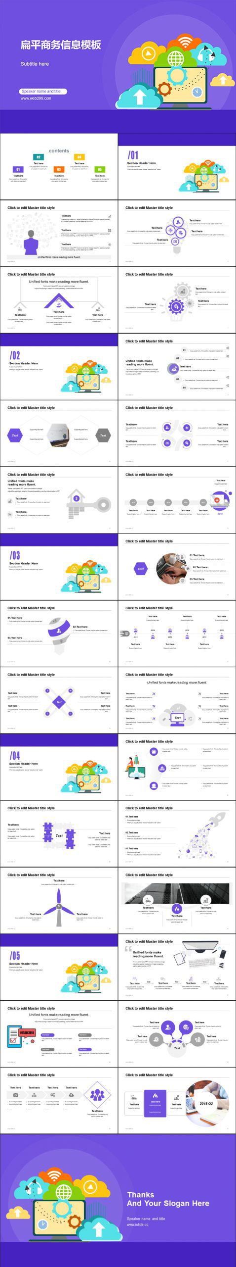 模板概述 该PPT共计32页,主题为简约商务风。 详细介绍 该PPT模板分5个部分,每个部分都包含丰富的逻辑图示素材、图表素材、版式和样机图案,架构清晰,非常丰满而实用。 适用范围 营销推广、电子商务、商务演讲、项目规划、工作报告等。