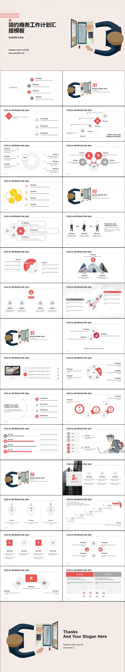 模板概述 该PPT共计32页,主题为简约商务风。 详细介绍 该PPT模板分4个部分,每个部分都包含丰富的逻辑图示素材、图表素材、版式,正文含有小标福,架构清晰,非常丰满而实用。 适用范围 职业发展、工作规划、培训课件、工作总结等