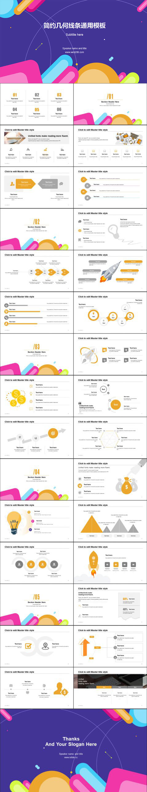 模板概述 该PPT共计32页,主题为简约商务风。 详细介绍 该PPT模板分4个部分,每个部分都包含丰富的逻辑图示素材、图表素材、版式和架构图,非常丰满而实用。 适用范围 节日庆典、产品展示、主题活动、营销方案等