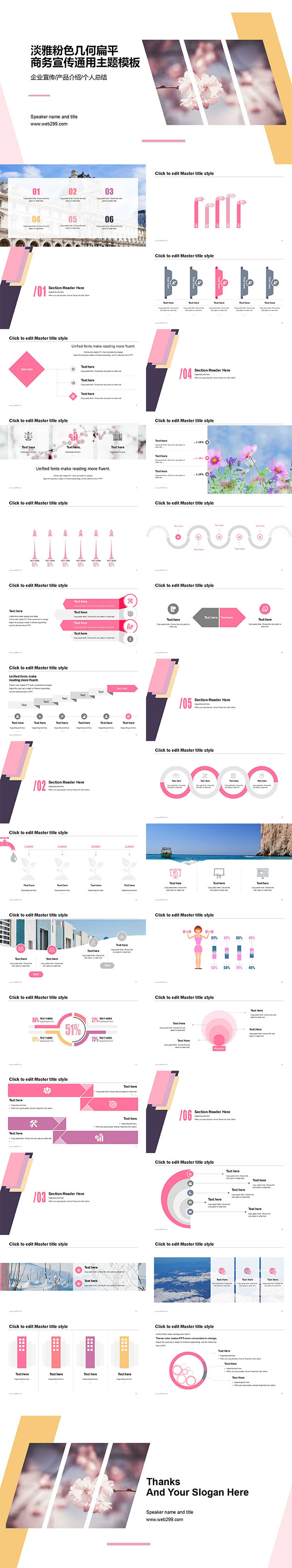 淡雅粉色几何扁平商务宣传PPT模板下载