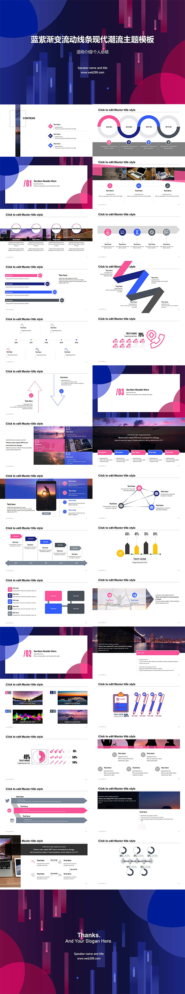 蓝紫渐变流动线条现代潮流PPT模板下载