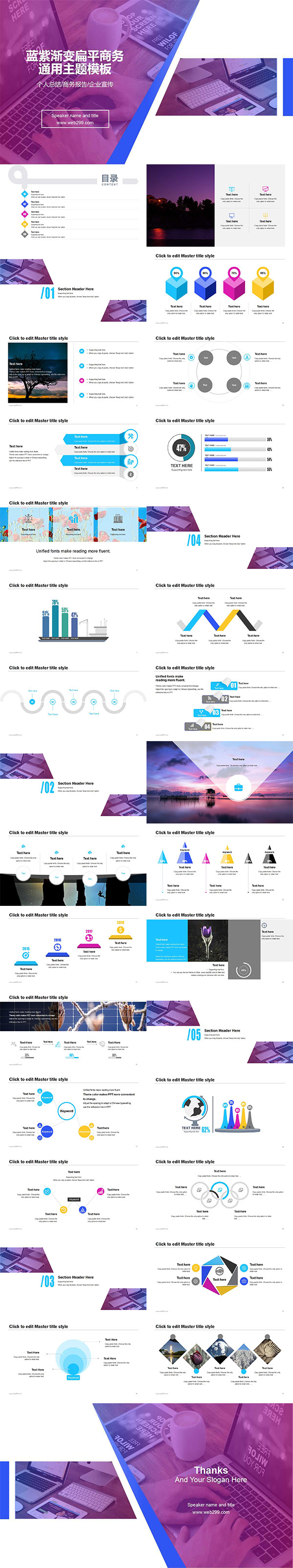 蓝紫渐变扁平商务工作规划PPT模板下载