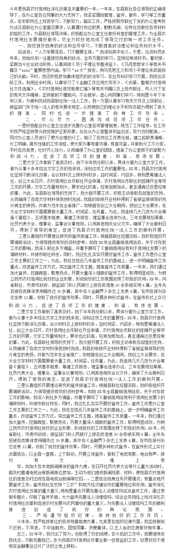 银行办公室副主任个人工作总结Word模板