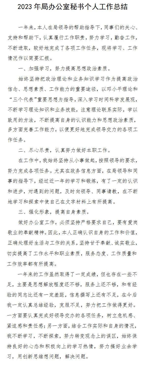 2023年局办公室秘书个人工作总结Word模板