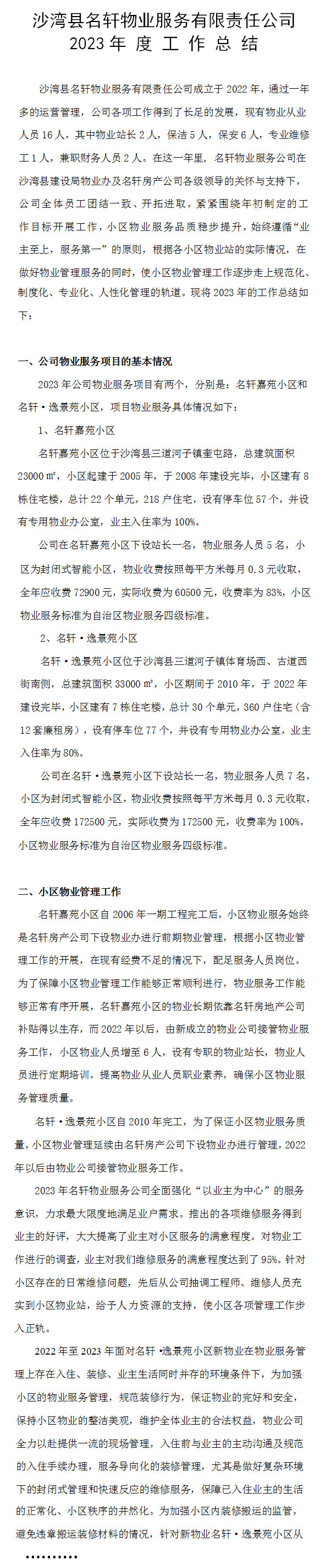 2023物业公司年终工作总结Word模板