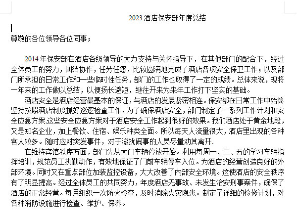 2023酒店保安部年度总结Word模板