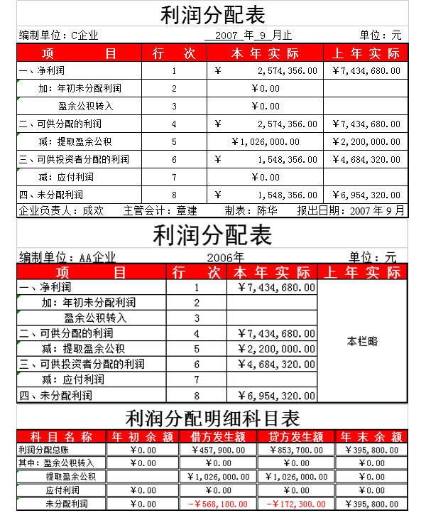9月利润分配Excel表格