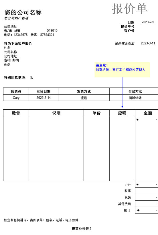 报价单Excel表格