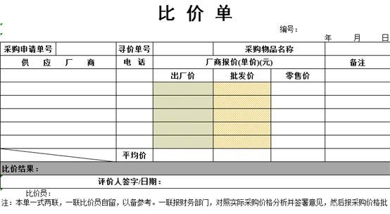 比价单Excel表格
