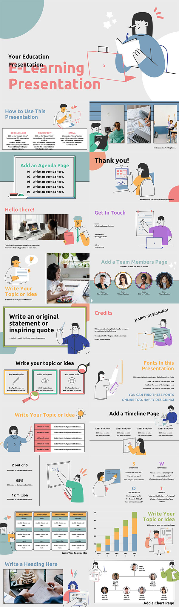 使用这些电子学习幻灯片将学习带入生活,非常适合用作幻灯片模板、ppt主题。通过适用于所有主题、要点和视觉辅助工具的精美现成幻灯片,激发学生的积极性。选择您自己的布局、配色方案和字体组合。添加图标、图像和表情符号。 超过 25 张现成的幻灯片,可根据您的喜好进行定制 数百种图表、框架、线条和形状可供选择