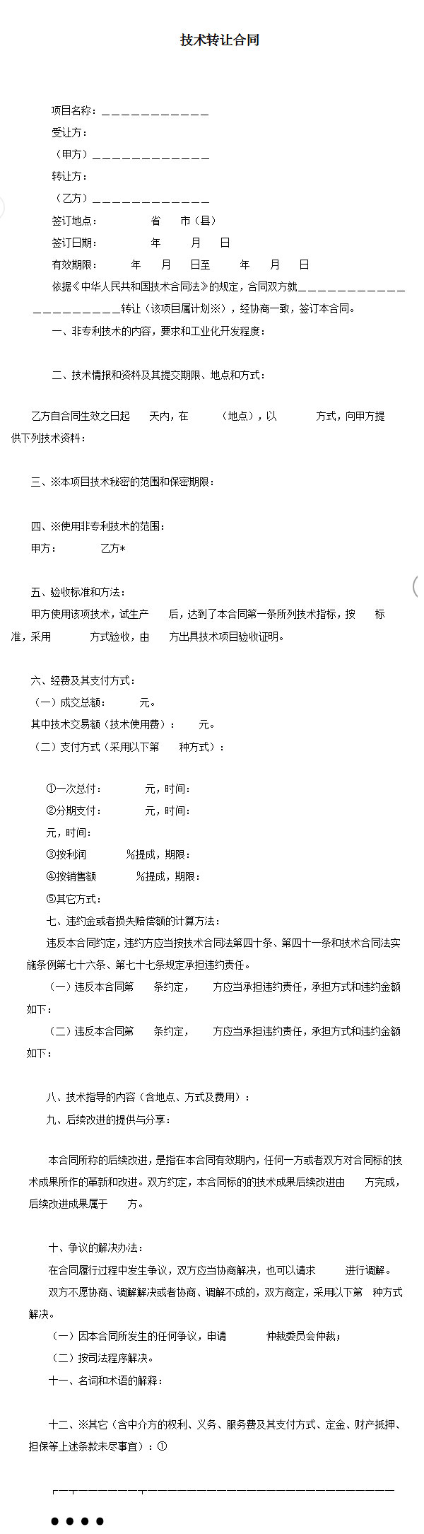 技术转让合同word模板下载
