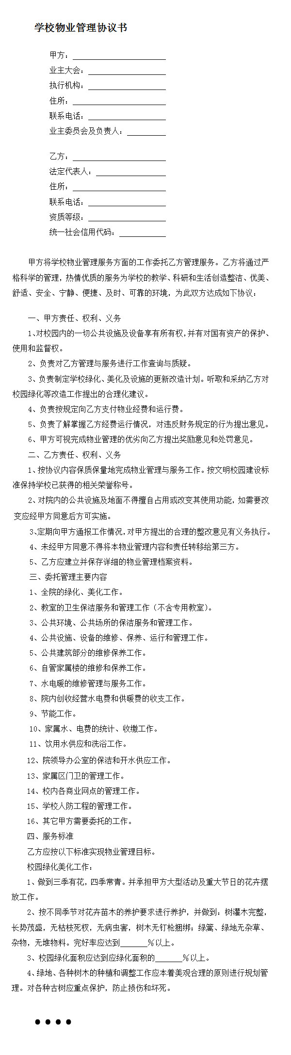 学校物业管理协议书word模板下载