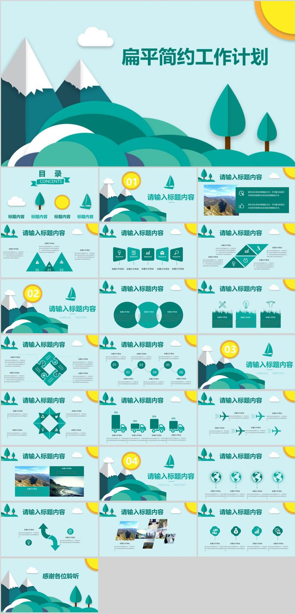 扁平简约工作计划PPT模板