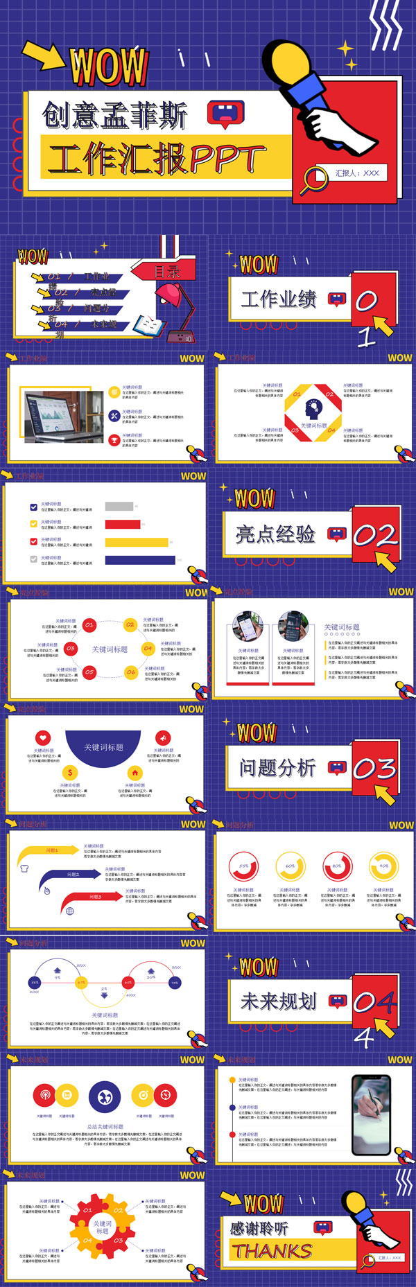 职场通用创意孟菲斯工作汇报PPT模板