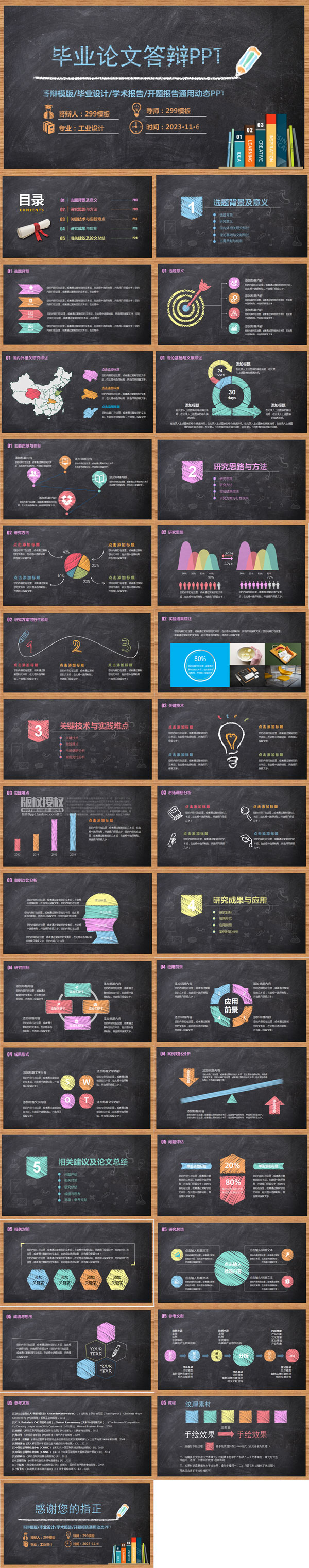 黑板风粉笔毕业论文答辩PPT模板
