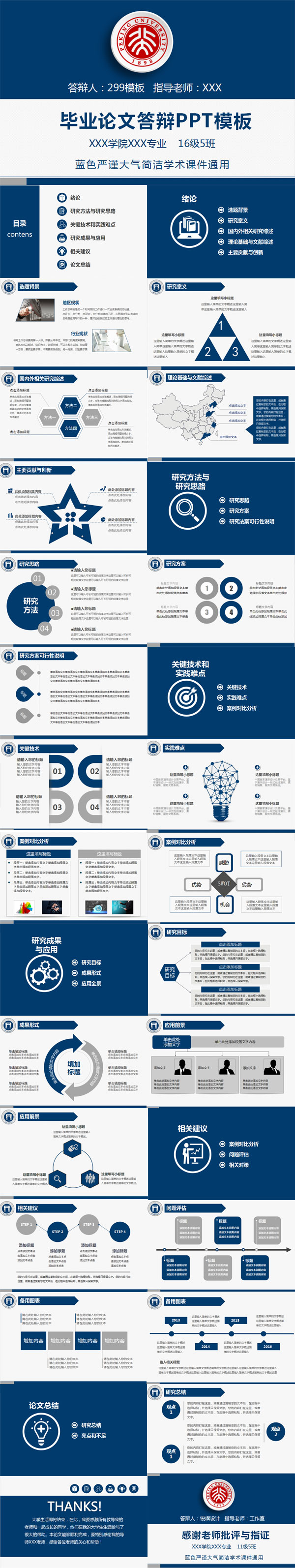 蓝色严谨大气简洁毕业论文答辩PPT模板