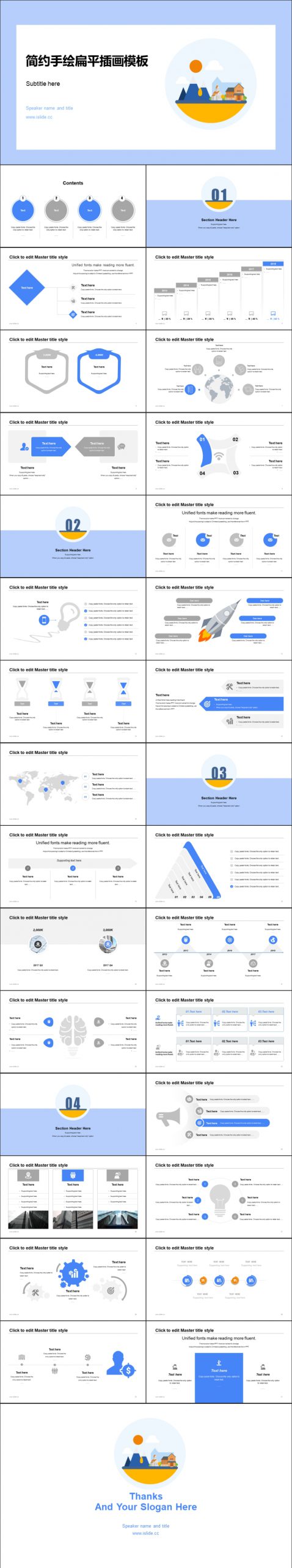 **模板概述** 该PPT共计32页,主题为清新卡通风。 **详细介绍** 该PPT模板分4个部分,每个部分都包含丰富的逻辑图示素材、图表素材、版式和素材,非常丰满而实用。 **适用范围** 培训课件、总结报告、项目汇报、项目投标、演说演讲等。