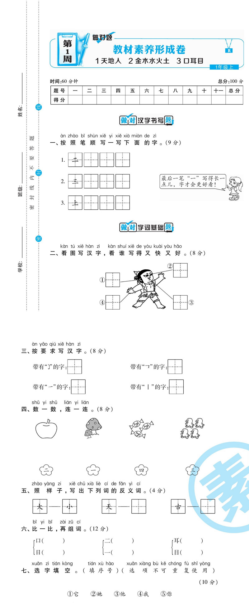 做对题一年级上册语文周考作业,pdf格式,共111页,可打印下载