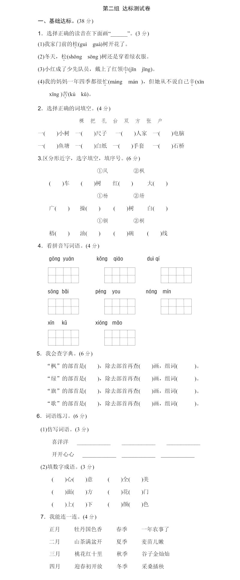 **部编二年级语文上册第1单元试卷 (2),pdf格式,共5页,可打印下载**