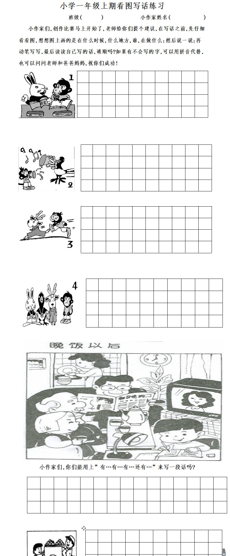 苏教版小学一年级语文上册看图写话练习