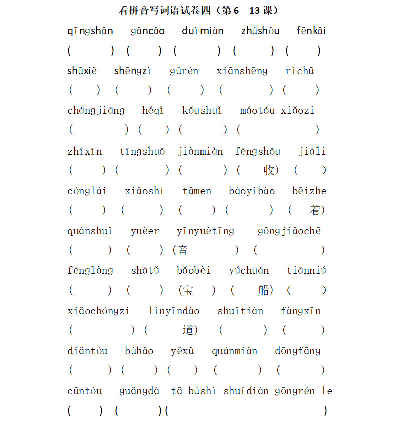 苏教版小学一年级语文上册看拼音写词语第6—13课