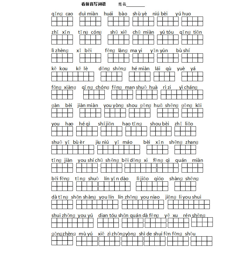 苏教版小学一年级语文上册看拼音写词语练习题