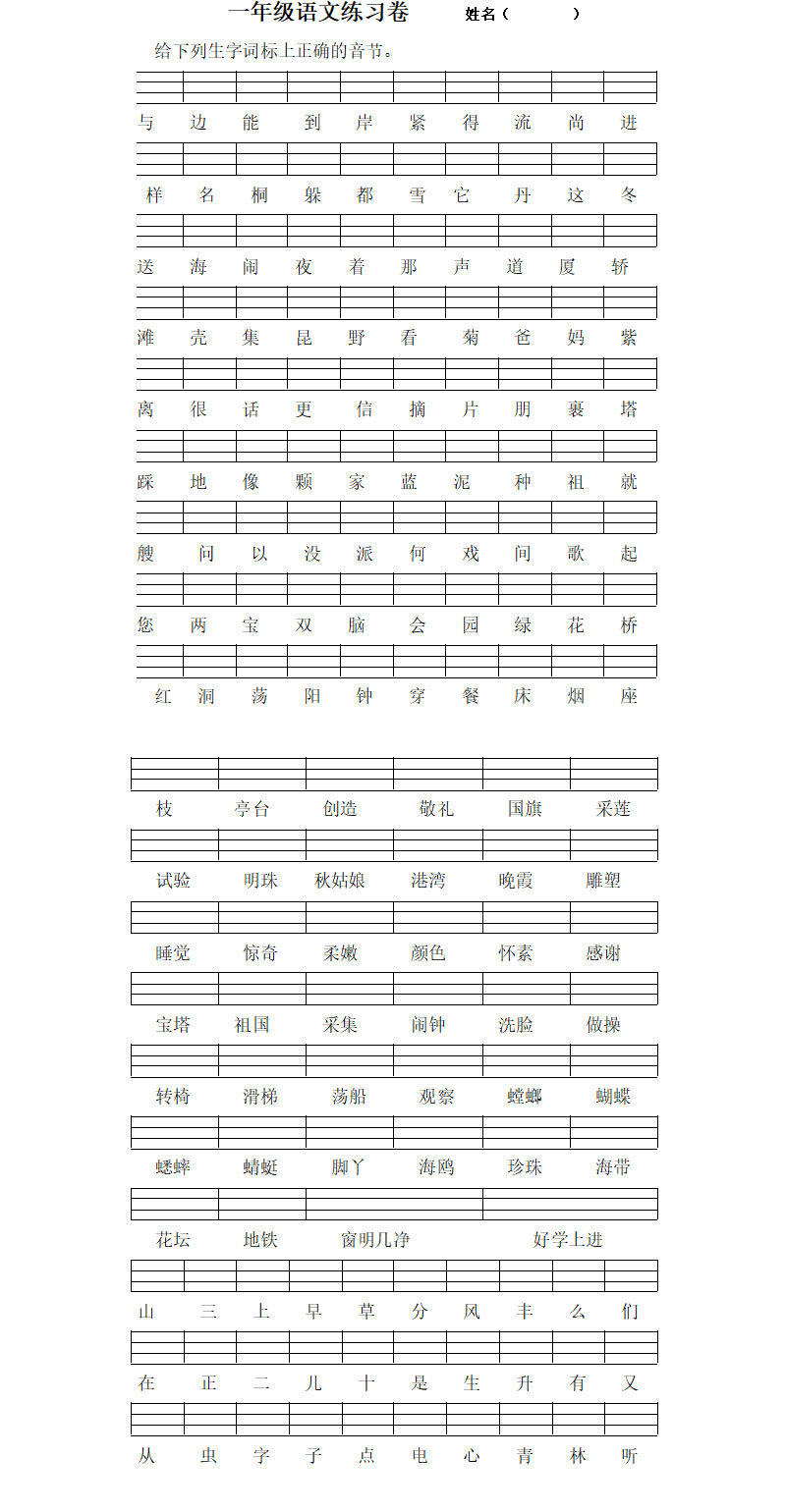 **苏教版小学一年级语文上册二类字练习题,word格式,共2页,可打印下载**