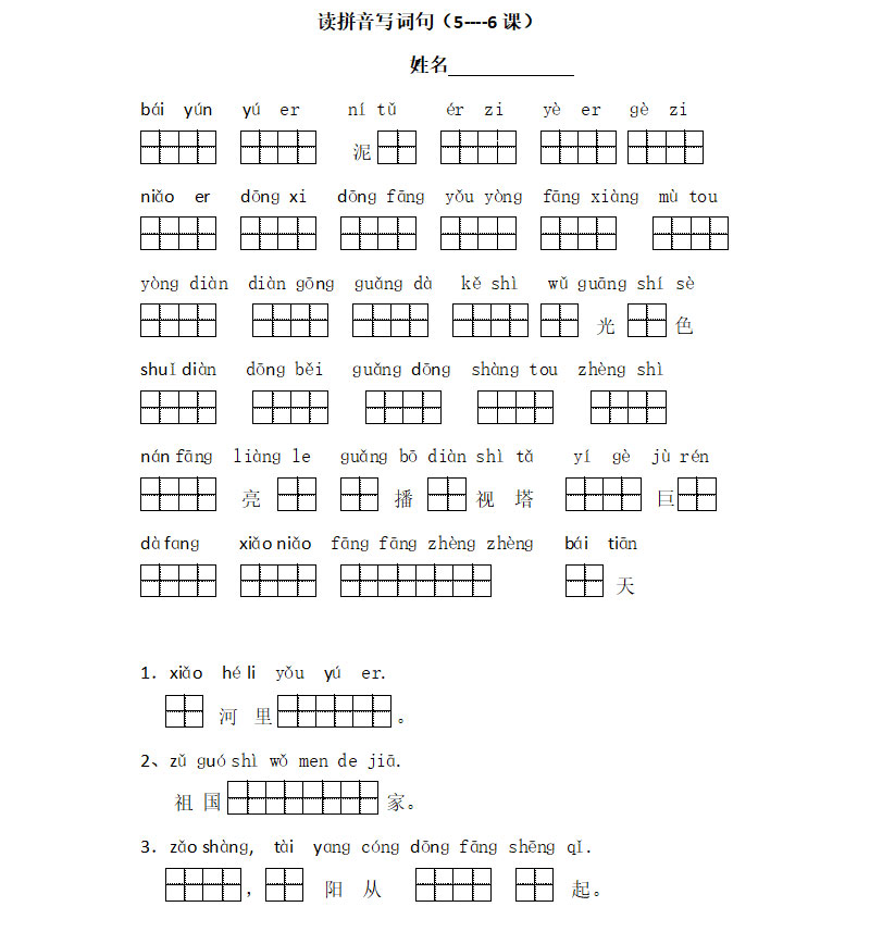 苏教版小学一年级语文上册读拼音写字词5-6课
