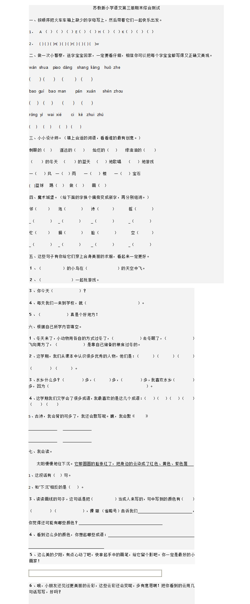 **语文第三册期末综合测试,word格式,共3页,可打印下载**