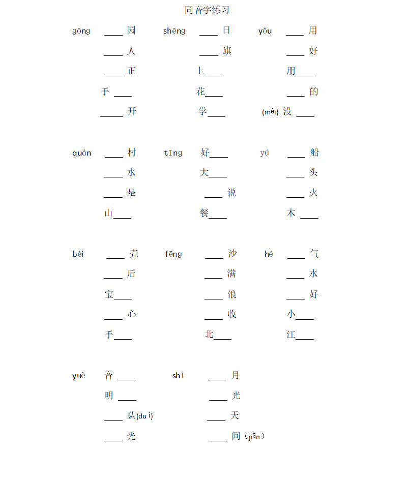 **小学一年级语文上册同音字练习题,word格式,共1页,可打印下载**