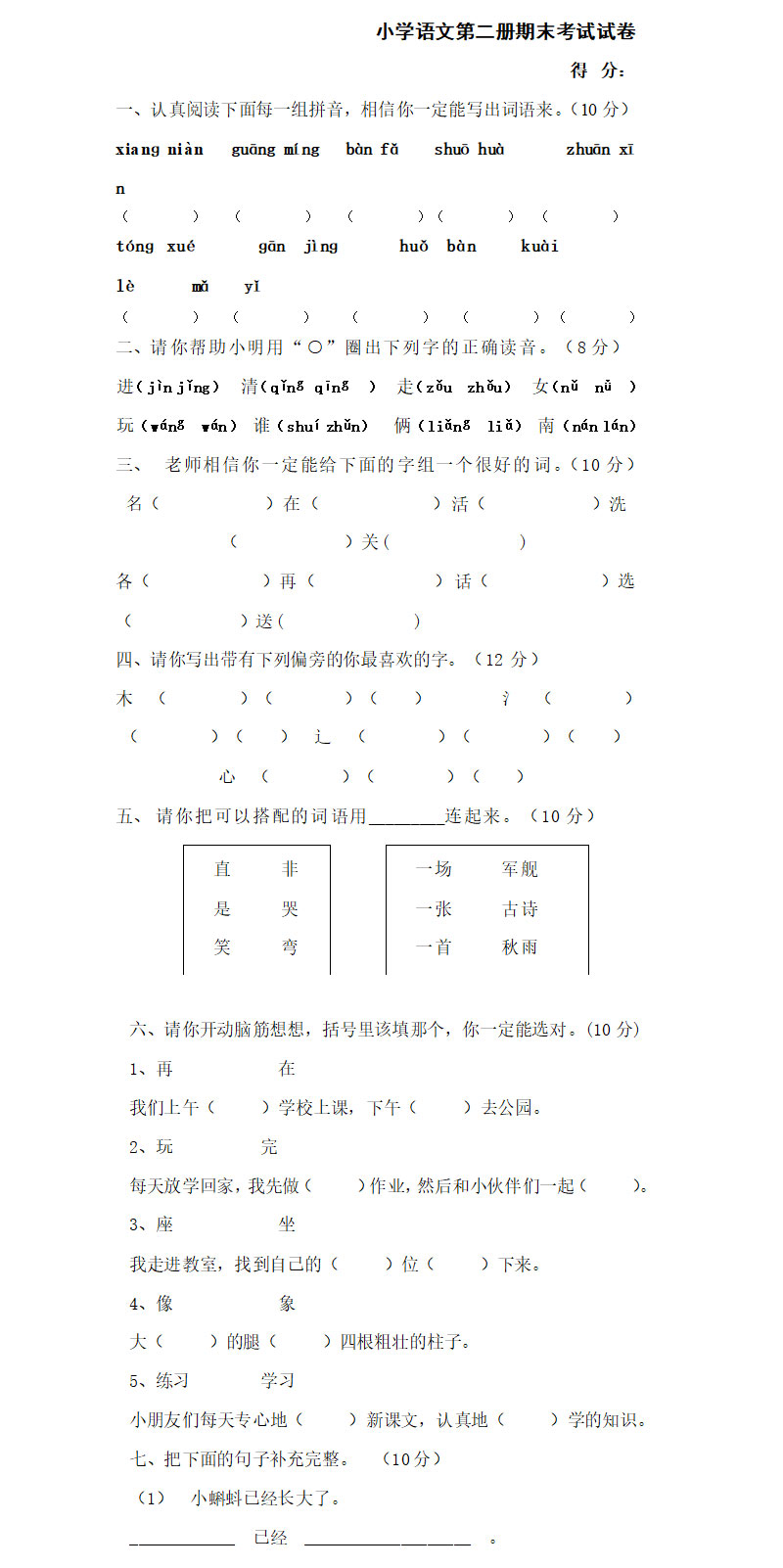 一年级语文下学期期末试题