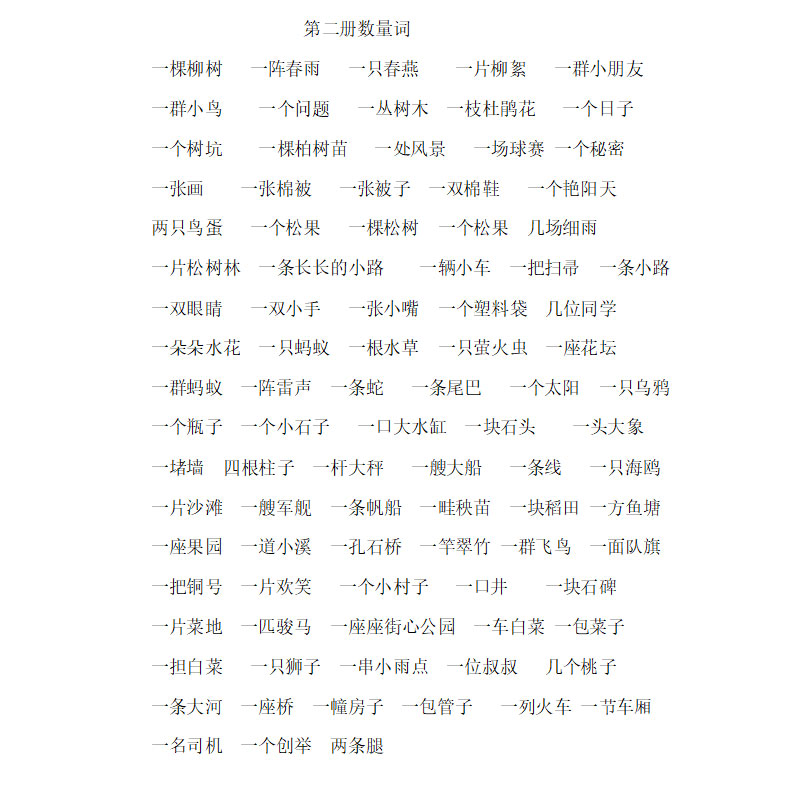 人教版新课标一年级语文下册数量词总汇练习题